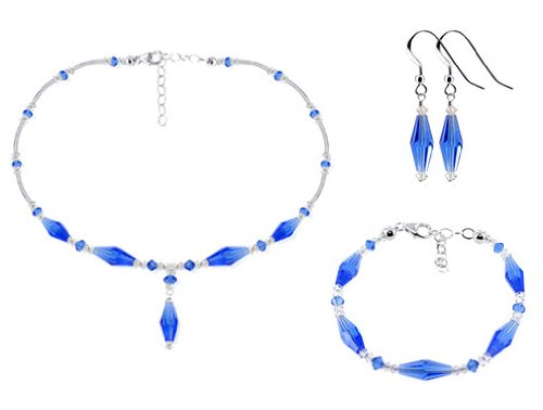 Jewelry Set crafted with Dark Blue and Clear Swarovski Crystal and Sterling Silver.