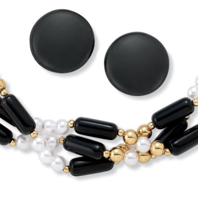 The clean, classic look of black and white in a set of picture-perfect accessories. Beaded 3-strand lucite necklace is 24" in length. Black lucite pierced earrings. Goldtone metal. Imported.. Palm Beach Jewelry Item 08338