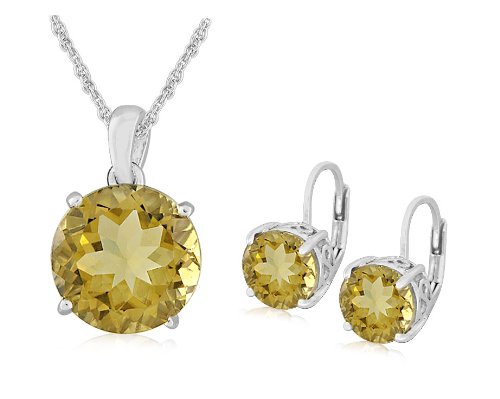 Sterling Silver Honey-Quartz Earrings and Pendant Set, 18" Review