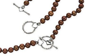 Elegant and refined, this necklace and bracelet set features rich round brown cultured pearls sized 5 to 6 mm. These exquisite pieces have stylized sterling silver clasps with heart details. A versatile and timeless look. ICE Style: TYY_100451.
