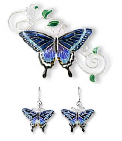 Clearly Charming Dark Tiger Swallowtail Butterfly Sterling Silver & Enamel Pin & Earring Set Review