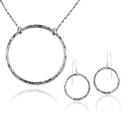 Sterling Silver Hammered Circle Necklace & Earrings Set Overview