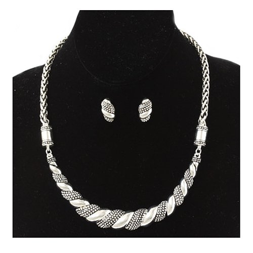 Thick Decorative Silver Twist Necklace & Earring Set Review
