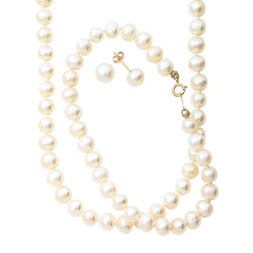 14k knotted freshwater pearl necklace earrings and bracelet set Review